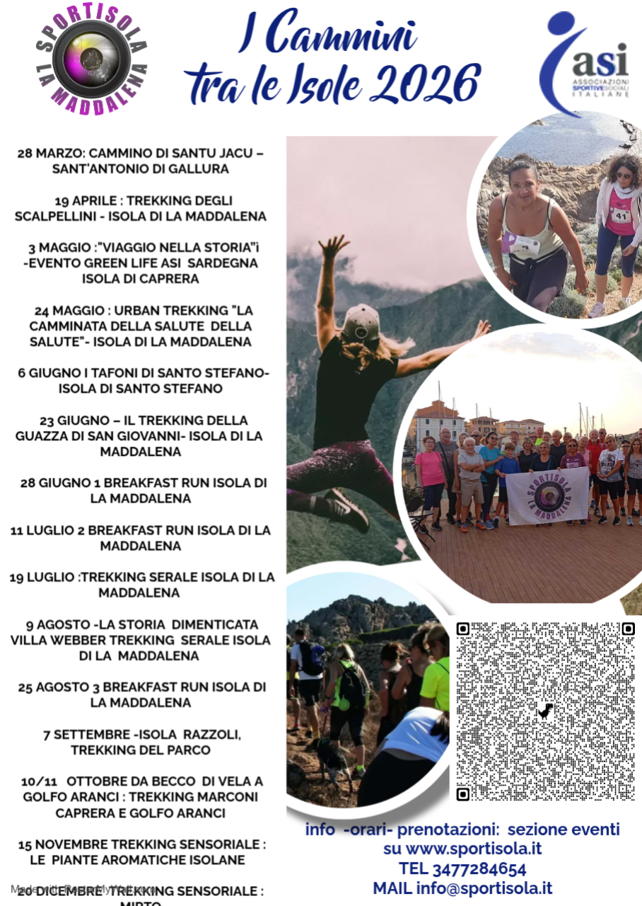 Sportisola La Maddalena è più di una ASD: nasce a La Maddalena (SS) nel 2016 per promuovere sport ed attività all’aria aperta, alla scoperta di un paesaggio ambientale e naturalistico che non solo mare e spiaggia.