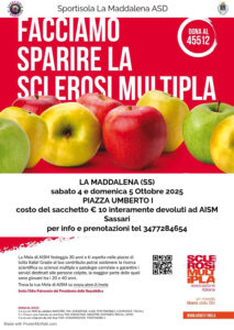 Sarà un onore per Sportisola, con il Patrocinio del Comune di La Maddalena, essere parte di questo progetto, con il nostro start in Piazza Umberto I nei giorni 4 e 5 ottobre pv, con le mele AISM.